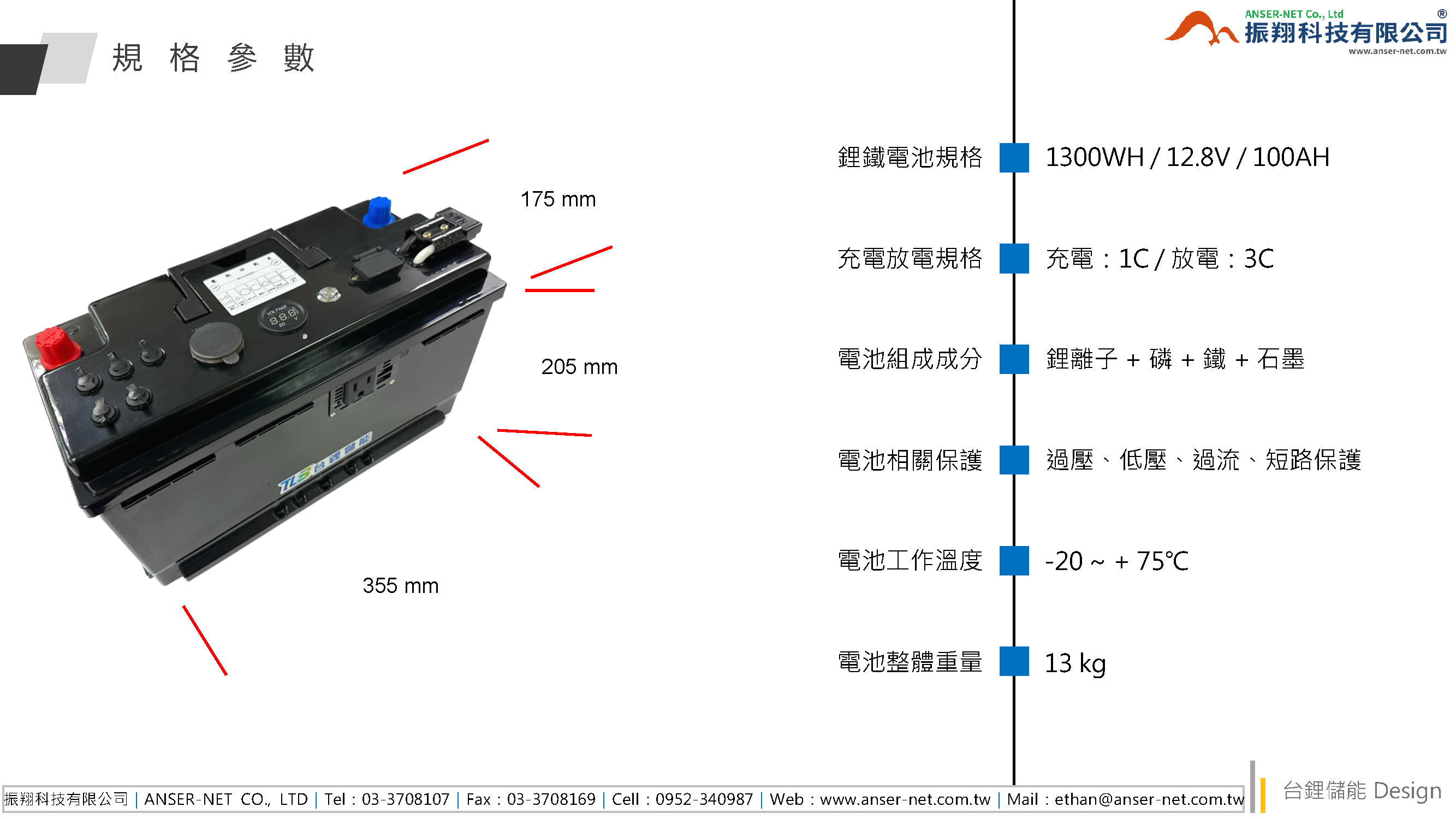 ※ 1300WH / 12.8V / 100AH